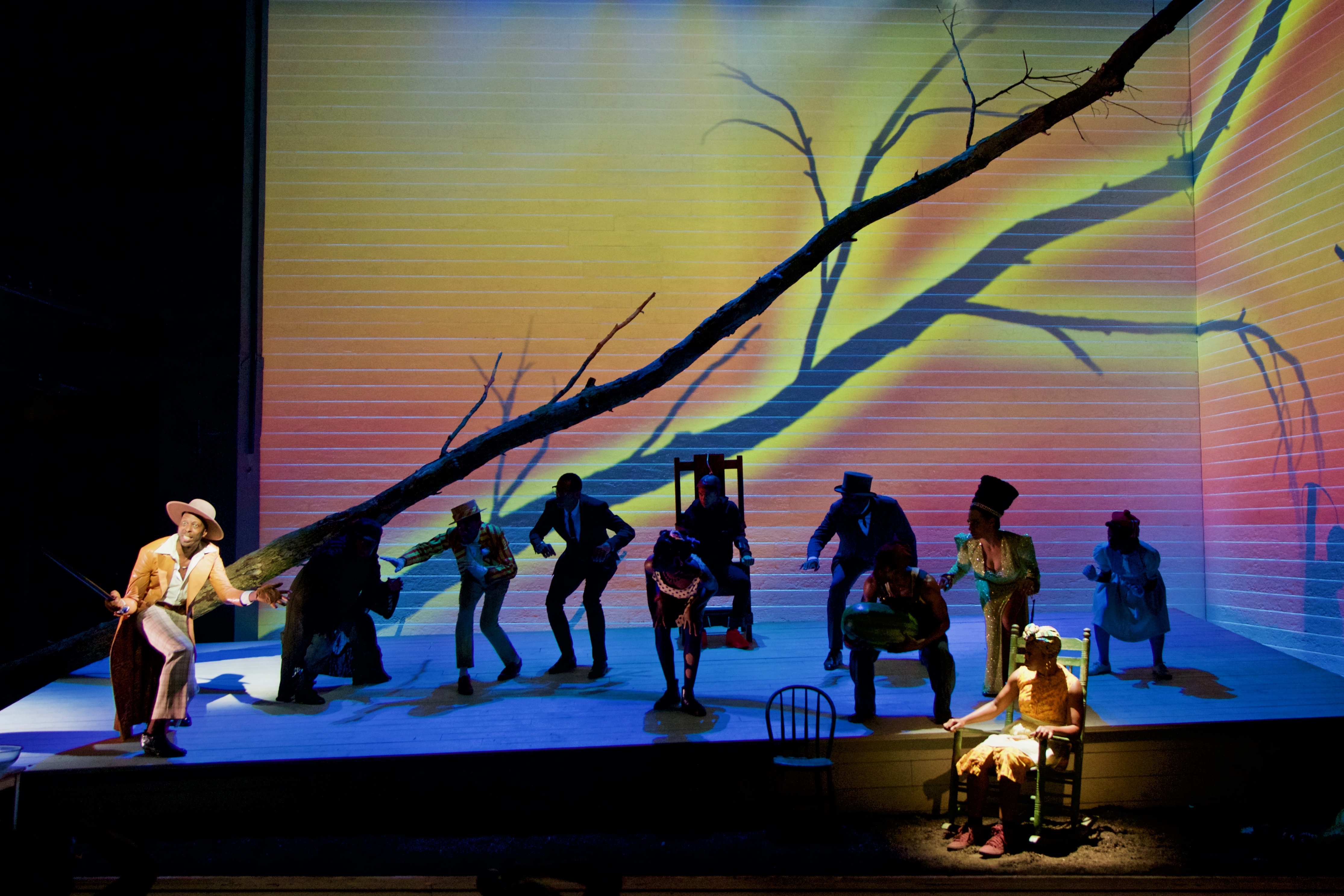Lighting design for The Death of the Last Black Man in the Whole Entire World, aka The Negro Book of the Dead by Suzan-Lori Parks, directed by Lileana Blain-Cruz, at the Signature Theatre in New York City. The set is by Riccardo Hernandez, the clothes are by Montana Blanco, the sound is by Palmer Hefferan, and the projections are by Hannah Wasileski.